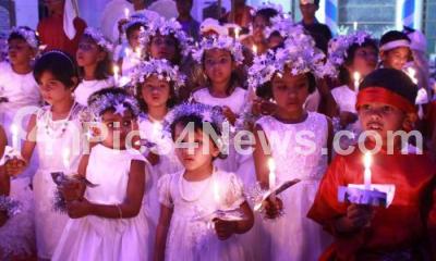 Photo Caption : School children of the CSI East Parade Church on the MG Road, dressed up as angels, hold candles and sing Christmas Carols during the candle night service, in Bengaluru on Sunday 23rd December 2018