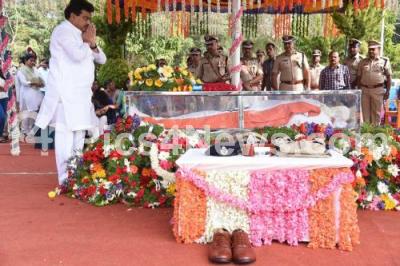 Photo Caption : Home Minister MB Patil paid tribute to IPS officer, Madhukar R Shetty, who died of swine flu at a hospital in Hyderabad, the mortal remains of IPS officer Madhukar R Shetty were kept at Yelahanka Armed Police Training School for public viewing, in Bengaluru on Saturday 29th December 2018