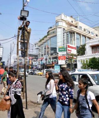Photo Caption : CCTV cameras being installed and barricades put up to control the new year crowd at MG Road and Brigade road for the security arrangements for the new year night celebrations at Brigade Road and MG Road, in Bengaluru on Sunday 30th December 2018