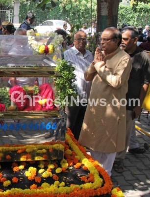 Photo Caption : Actor Mukyamantri Chandru and others paid their last respect to Senior Actor Loknath, who passed away in the early hours due to cardiac arrest, in Bengaluru on Monday 31st December 2018