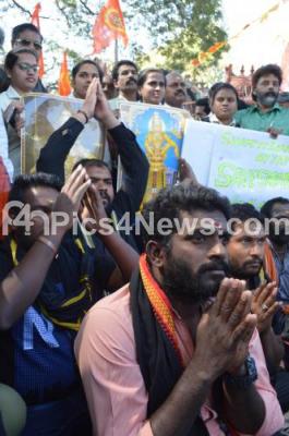 Event Description : Members of Sri Sabarimala Kshetra Samrakshana Samiti staged a protest against Kerala Government for allowing some women devotees to enter Sabarimala Temple in Kerala, the protest was held at SBM Circle, in Bengaluru on Thursday 3rd January 2019