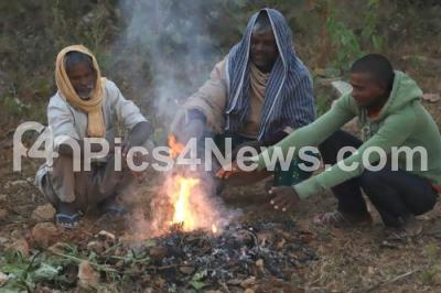 Photo Caption : People sitting in front of fire camp to get warm as the temperatures are getting cold at Visvesvaraiah Layout, in Bengaluru on Friday 4th January 2019