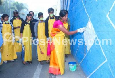 Mayor Nagambike Mallikarjuna and volunteers participated in wall painting program at Windsor Manor under pass, in Bengaluru on Sunday 6th January 2019