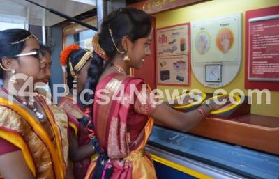 Photo Caption : Students enjoying the science projects at the science exhibition during the “Southern States Science Fair 2019 at St Josephs Indian High School, organised by Visvesvaraya Industrial and Technological Museum, in Bengaluru on Monday 7th January 2019