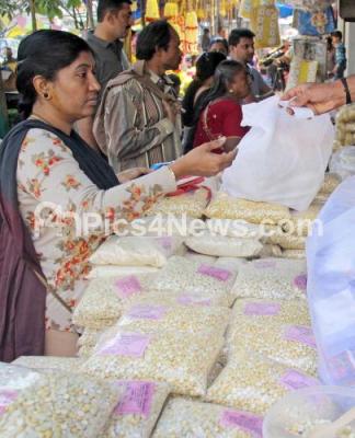 People shopping Sesame, Jaggery for the Sankranti Festival at Gandhi Bazaar, in Bengaluru on Sunday 13th January 2019