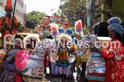 Photo Caption : Folk artistes cultural program during Sankranti celebrations organised by Bengaluru Youth Congress at Okalipuram, in Bengaluru on Tuesday 15th January 2019