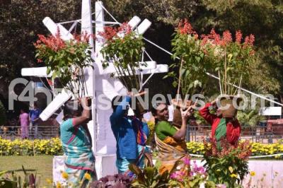 Event Description : Republic Day flower show preparations at Lalbagh, in Bengaluru on Wednesday 16th January 2019