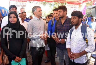 Photo Caption : Minister Krishna Byre Gowda interacting with students during inauguration of Job Fair at Kodigehalli, in Bengaluru on Saturday 19th January 2019