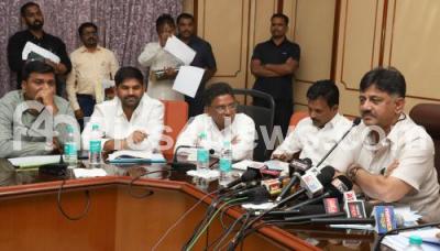 Photo Caption : Minister DK Shivakumar addressing a press conference with MPs and MLAs at Vidhana Soudha, in Bengaluru on Saturday 19th January 2019