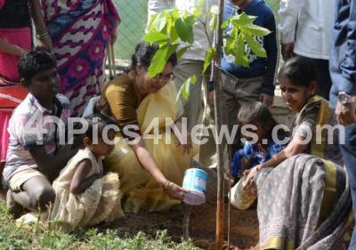 Photo Caption : Tejaswini Ananth Kumar and Children participated in planting saplings at Kempambudhi lake during 160th Green Sunday organised by Adamya Chetana, in Bengaluru on Sunday 20th January 2019