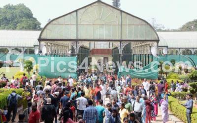 Photo Caption : Visitors at the Republic Day flower show at Glass House, Lalbagh, in Bengaluru on Sunday 20th January 2019