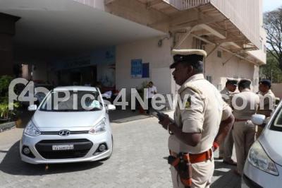 Photo Caption : Tight police security outside Apollo Hospital, Sheshadripuram, where Congress MLA Anand Singh is being treated, in Bengaluru on Monday 21st January 2019