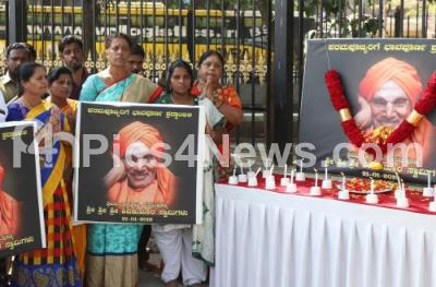 Photo Caption : Members Congress party leaders and workers participated in the Shradhanjali program of Dr Shri Shivakumar Swamiji, Siddaganga Mutt, Tumkur, who passed away, the Shradhanjali program was held at Gandhi Statue, Anand Rao Cricle, in Bengaluru on Tuesday 22nd January 2019