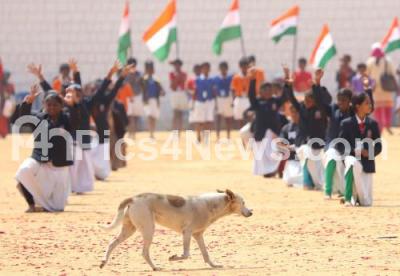 School students participated in the full dress rehearsal took place on the eve of Republic Day celebrations at Manekshaw Parade grounds, in Bengaluru on Thursday 24th January 2019