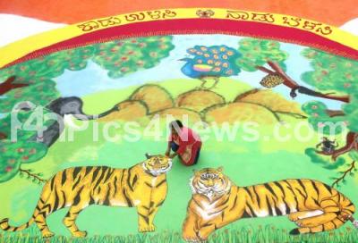 LCH Residents Welfare Association Ladies Wing draws the Mega Rangoli Save Nature is Our Future concept on the eve of Republic Day celebrations at Kittur Rani Chennamma Stadium, Jayanagar, in Bengaluru on Friday 25th January 2019