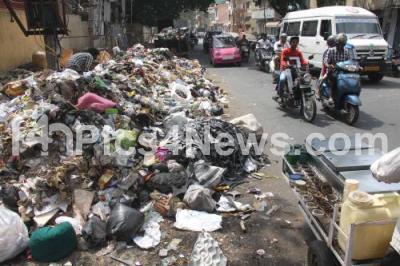 Photo Caption : Garbage piled up at Bharathinagar, Kamaraj Road, in Bengaluru on Sunday 27th January 2019
