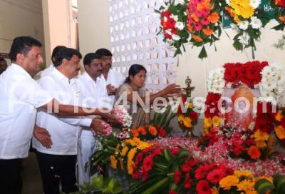 Photo Caption : BBMP Mayor Gangambike Mallikarjuna with Councilors offering floral tribute to Dr Shivakumar Swamiji portrait at BBMP, in Bengaluru on Tuesday 29th January 2019
