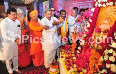 Photo Caption : Minister MB Patil with Former CM Siddaramaiah, MLA V Somanna, Narayan Gowda, MLC CM Ibrahim and others paid tribute to Dr Sri Shivakumar Swamiji during a program organised by Karnataka Rakshana Vedike at Palace Grounds, in Bengaluru on Tuesday 29th January 2019