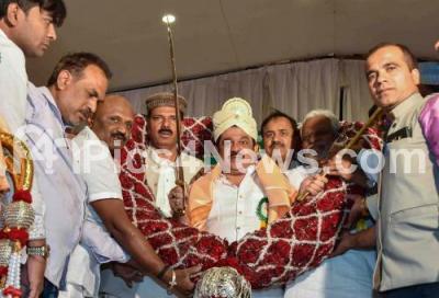 Minister Zameer Ahmed Khan being felicitated during All India Jamiyathul Mansoor Karnataka during National Awareness Convention of All India Jamiyathul Mansoor Karnataka at Palace Grounds, also seen are Javeed Iqubal Mansoori and others, in Bengaluru on Sunday 3rd February 2019
