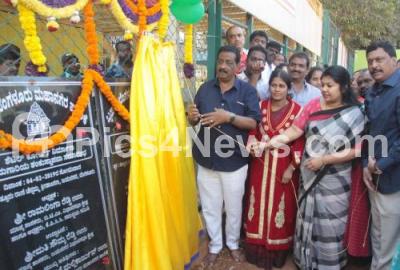 Photo Caption : Mayor Gangambike Mallikarjuna with MLA Sowmya Reddy, Councilors Nagaraj, Rizwan and others during inauguration of laying foundation stone for Badminton Court at Rani Kittur Channamma Grounds, Jayanagar, in Bengaluru on Monday 4th February 2019