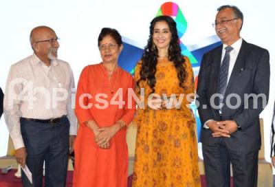 Photo Caption : Actress and Cancer Survivor Manisha Koirala with Dr H Sudarshan Ballal, Chairman Manipal Hospitals and Somashekar, Chairman and HOD Surgical Oncology, Manipal Hospitals during a "Cancer less Future" program at Manipal Hospital, in Bengaluru on Monday 4th February 2019