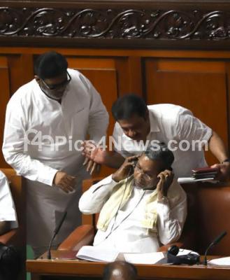 Photo Caption : Minister Zameer Ahamed Khan with Former CM Siddaramaiah and MLA Anand Singh seen during budget session at Vidhana Soudha, in Bengaluru on Wednesday 6th February 2019