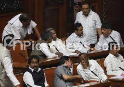 Photo Caption : Congress leaders Siddaramaiah, DK Shivakumar and others seen during the Assembly Session at Vidhana Soudha, in Bengaluru on Thursday 7th February 2019
