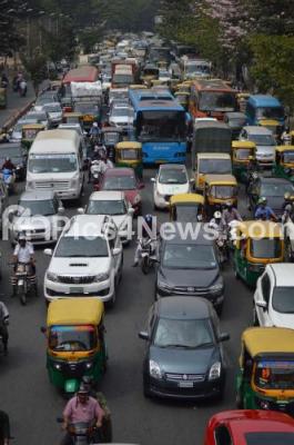 Photo Caption : Heavy traffic jam at Sheshadri Road, in Bengaluru on Thursday 7th February 2019