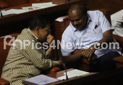Photo Caption : CM HD Kumarswamy seen with DCM Dr G Parameshwar during the discussion on audiogate controversy at the Assembly Session at Vidhana Soudha, in Bengaluru on Tuesday 12th February 2019