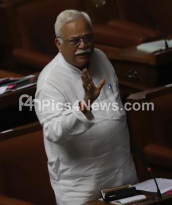 Photo Caption : Minister RV Deshpande addressing during the discussion on audiogate controversy at the Assembly Session at Vidhana Soudha, in Bengaluru on Tuesday 12th February 2019