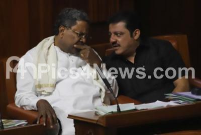 Photo Caption : Former CM Siddaramaiah with Miniter Zameer Ahmed Khan seen during the discussion on audiogate controversy at the Assembly Session at Vidhana Soudha, in Bengaluru on Tuesday 12th February 2019