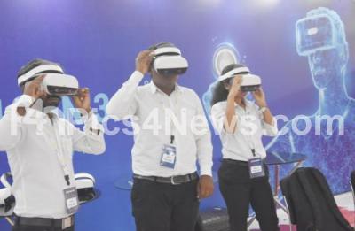 Photo Caption : Visitors experience the virtual reality during the inauguration of TTF ( Travel Trade Fair) at Palace Grounds, in Bengaluru on Friday 15th February 2019