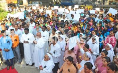 Photo Caption : Members of Joseph Sneha Abhiruddi Sangha (Joseph Friendships Association) paid tribute by lighting candle for the soldiers martyred in Pulwama in Jammu and Kashmir, the program was held at Joseph Church, Chamarajpet, in Bengaluru on Sunday 17th February 2019