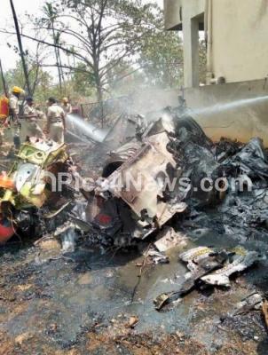 A still from a video footage shows an aircraft in flames after two aircrafts of IAFs aerobatic team Surya Kiran crashed near Yelahanka air base, in Bengaluru on Tuesday 19th February 2019
