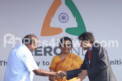 Photo Caption : Nirmala Sitharaman, Minister of Defense with Chief Minister of Karnataka HD Kumarswamy and Union Minister Suresh Prabhu seen during the inaugural day of Aero India 2019 at Yelahanka air base, in Bengaluru on Wednesday 20th February 2019