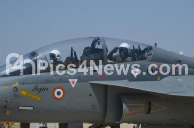 Photo Caption : Indian Army Chief, Bipin Rawat, seated Right, waves as he flies in a Tejas, an Indian Air Force light combat aircraft, on the second day of Aero India 2019 at Yelahanka air base, in Bengaluru on Thursday 21st February 2019