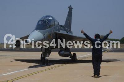 Photo Caption : Tejas, an Indian Air Force light combat aircraft carrying Indian Army Chief Gen. Bipin Rawat, is all set for take off, on the second day of Aero India 2019 at Yelahanka air base, in Bengaluru on Thursday 21st February 2019