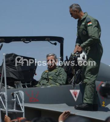 Photo Caption : Indian Army Chief Gen. Bipin Rawat prepares to board Tejas, an Indian Air Force light combat aircraft, before flying in it on the second day of Aero India 2019 at Yelahanka air base, in Bengaluru on Thursday 21st February 2019