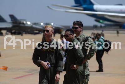Photo Caption : American Air Force staff seen on the tarmac , on the second day of Aero India 2019 at Yelahanka air base, in Bengaluru on Thursday 21st February 2019