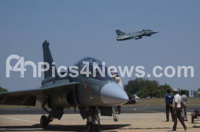 Photo Caption : Tejas, an Indian Air Force light combat aircraft takes off, on the second day of Aero India 2019 at Yelahanka air base, in Bengaluru on Thursday 21st February 2019