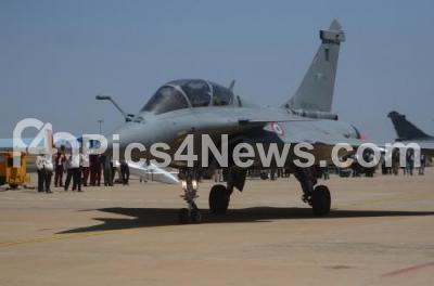Photo Caption : An Indian Air Force Rafale, a French fighter aircraft is getting ready for take off on the second day of Aero India 2019 at Yelahanka air base, in Bengaluru on Thursday 21st February 2019