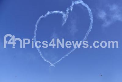 Photo Caption : The Yakovlevs, a UK based aerobatic team flying Russian designed Yakovlev aircrafts draw a heart in the sky on the 3rd day of Aero India 2019 at Yelahanka air base, in Bengaluru on Saturday 22nd February 2019