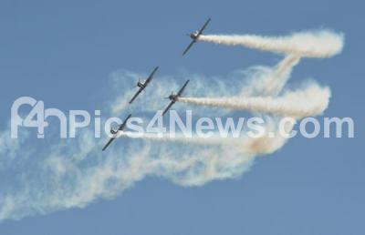 Photo Caption : The Yakovlevs, a UK based aerobatic team flying Russian designed Yakovlev aircrafts, perform aerobatic maneuvers on the 4th day of Aero India 2019 at Yelahanka air base, in Bengaluru on Saturday 23rd February 2019