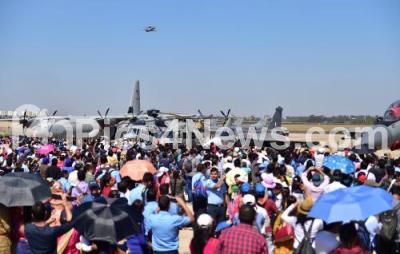 Visitors watching aircrafts display during 12th edition of Aero India 2019 at Yelahanka air base, in Bengaluru on Saturday 23rd February 2019