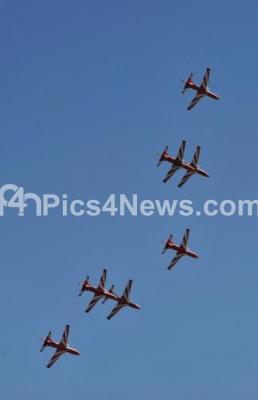 Photo Caption : Surya Kiran display on the last day of the 12th edition of AERO India 2019 at Yelahanka Airbase, in Bengaluru on Sunday 24th February 2019
