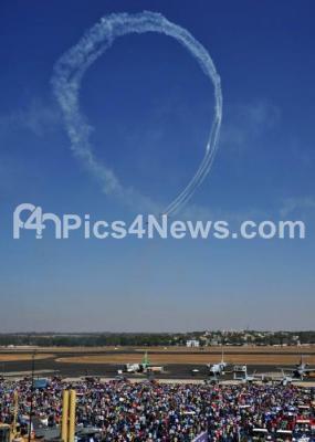 Photo Caption : Spectators watch the performance of the Russian Yakovlevs team display during last day of the 12th edition of AERO India 2019 at Yelahanka Airbase, in Bengaluru on Sunday 24th February 2019
