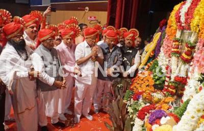 Photo Caption : MLA Roshan Baig with Former Minister PGR Sindhiya, VI Ranoja Rao Sate, Governing Council Chairman, KKMP, S Suresh Rao Sate, State President, KKMP and others at the 392nd Chatrapati Sri Shivaji Maharaj Jayantotsava organised by Karnataka Khsatriya Marata Parishat at Dr BR Ambedkar Bhavan, in Bengaluru on Sunday 24th February 2019