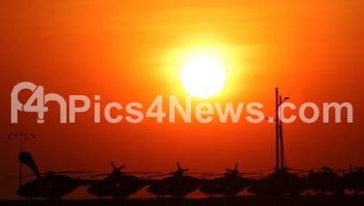 Event Description : Helicopters parked at Yelahanka Air base in the back drop of sunset on the last day of the 12th biennial edition of AERO INDIA 2019, in Bengaluru on Sunday 24th February 2019
