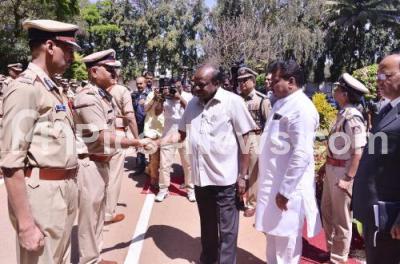 Photo Caption : Chief Minister HD Kumaraswamy interacting with Senior police officers during the Senior Police Officers Annual Conference at DG Office, in Bengaluru on Monday 25th February 2019