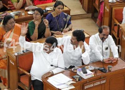 Photo Caption : BBMP BJP Councilors during BBMP Council meeting at BBMP office, in Bengaluru on Wednesday 27th February 2019